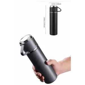 Isıyı Uzun Süre Koruyan 500 ml Termos Seti | Çelik Gövde, 2 Bardaklı, Hediye Kutulu