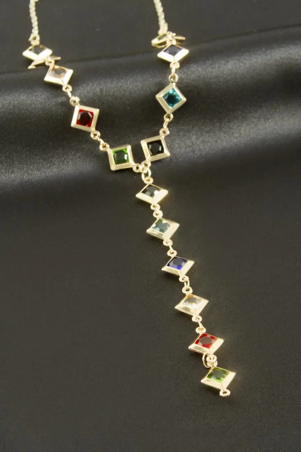 Kare Kristal Taşlı Y Kolye
