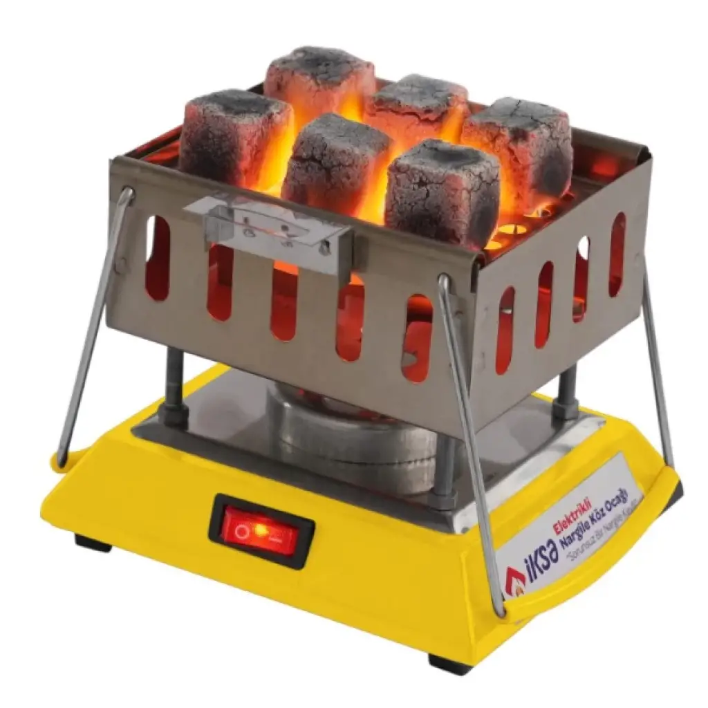 KARE KROM ELEKTRİKLİ NARGİLE KÖZ OCAĞIÜrün ÖzellikleriKare krom elektrikli nargile köz ocağı, nargile keyfini sorunsuz bir şekilde yaşamanız için özel olarak tasarlanmıştır. Dayanıklı gövde yapısı, krom malzemesi ve emaye kaplaması sayesinde uzun ömürlü kullanım imkânı sunar. Elektrikle çalıştığı için hızlı ısınır ve közlerin eşit şekilde yanmasını sağlar. Üzerinde yer alan açma-kapama düğmesi ile kolay kullanım imkânı verir. Kompakt tasarımı sayesinde evde, kafede veya farklı ortamlarda rahatlıkla kullanılabilir. Köz maşası da ürünle birlikte gönderilerek pratik kullanım desteklenir. Renk seçeneği bulunmamakla birlikte görsellerdeki renklerden karışık olarak gönderilmektedir.Paket İçeriği1 adet Kare Krom Elektrikli Nargile Köz Ocağı