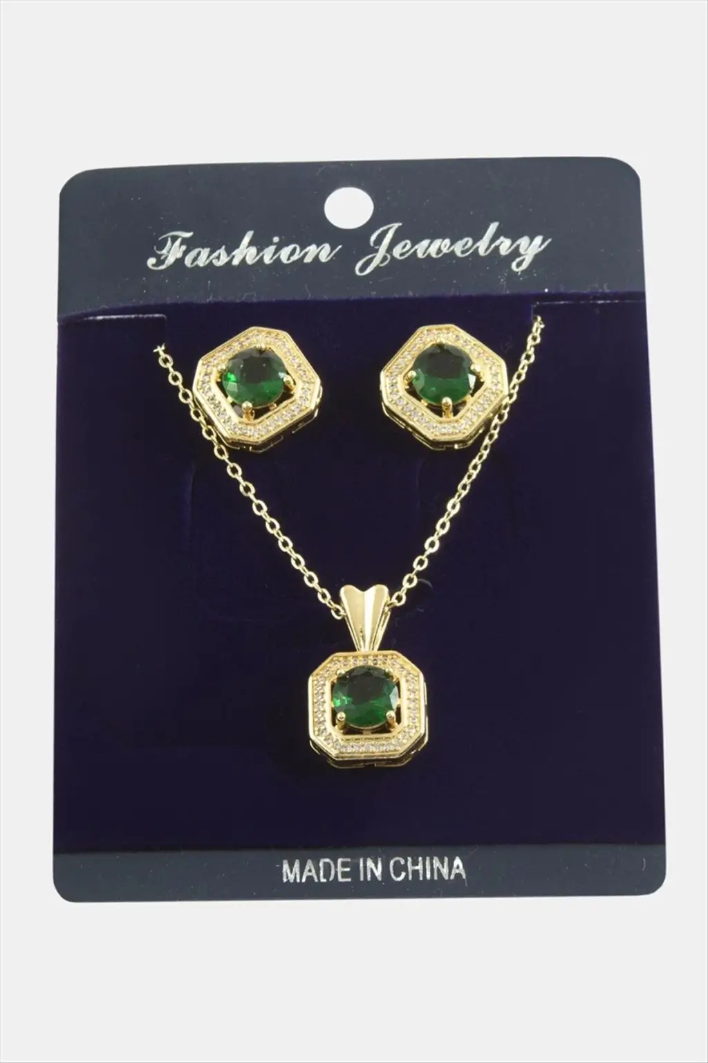 Kolye; Ürün malzemesi metal ve zirkon taştan üretilmiştir. 1 sınıf kaliteli malzeme kullanılmıştır. Ürün 1 adet kolye, ve 1 adet çift küpe vardır. Ürün zincir uzunluğu 45 santimdir. Ürün ucundaki taşlı aparat boyu 1,5 cmdir.