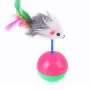 Kedi Oyun Topu Tüylü Fareli Hacı Yatmaz Eğitici Yavru Kedi Fare Kovalama Oyuncağı