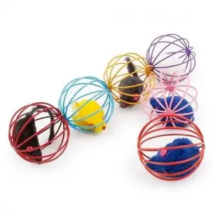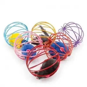 Renkli Metal Kafesli Peluş Fareli Kedi Köpek Oyuncağı Oyun Topu 6 cm