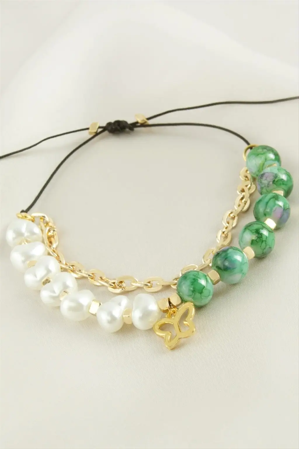 Kelebek İnci Boncuk Zincirli Bileklik
