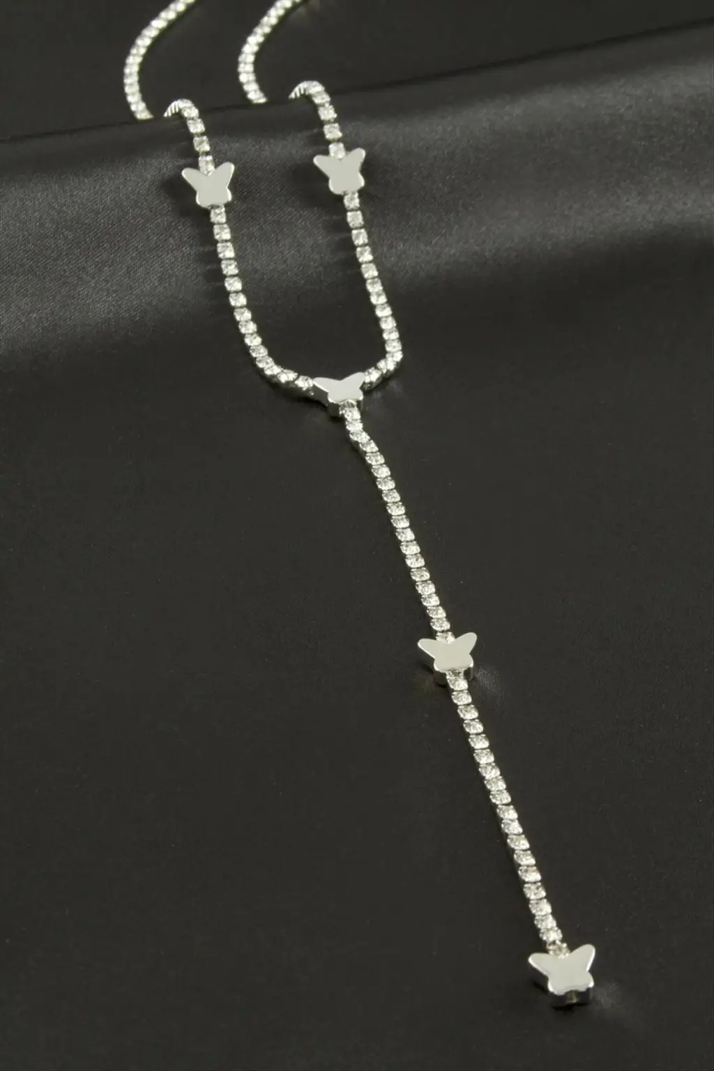 Kelebek Şerit Taşlı Çelik Y Kolye