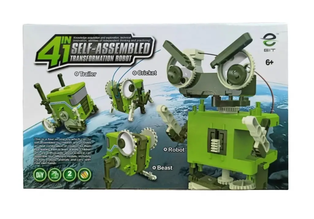 Kendin yap modeline sahip üründe çocuklar 4  farklı modelde robot  tasarlayabilir. romörk, canavar, cricket böceği ve robot.