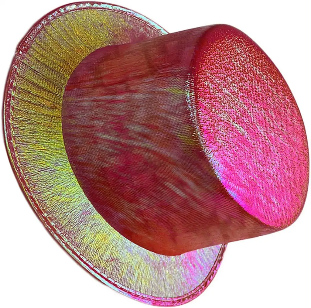 Kırmızı Renk Işıltılı Hologram Kumaş Kaplama Fötr Silindir Şapka Yetişkin Boy, partiler, festivaller ve diğer özel günler için mükemmel bir aksesuardır. 58 cm baş çevresi için uygundur ve ışıl ışıl parıldayan yeşil hologram kumaşla kaplıdır.