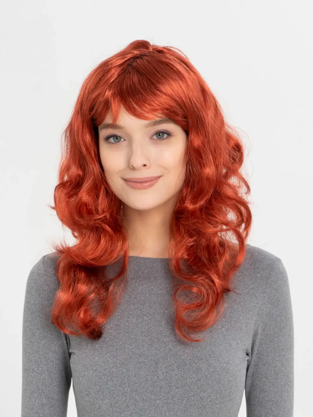 Kızıl Renk Dalgalı Uzun Parti Peruğu