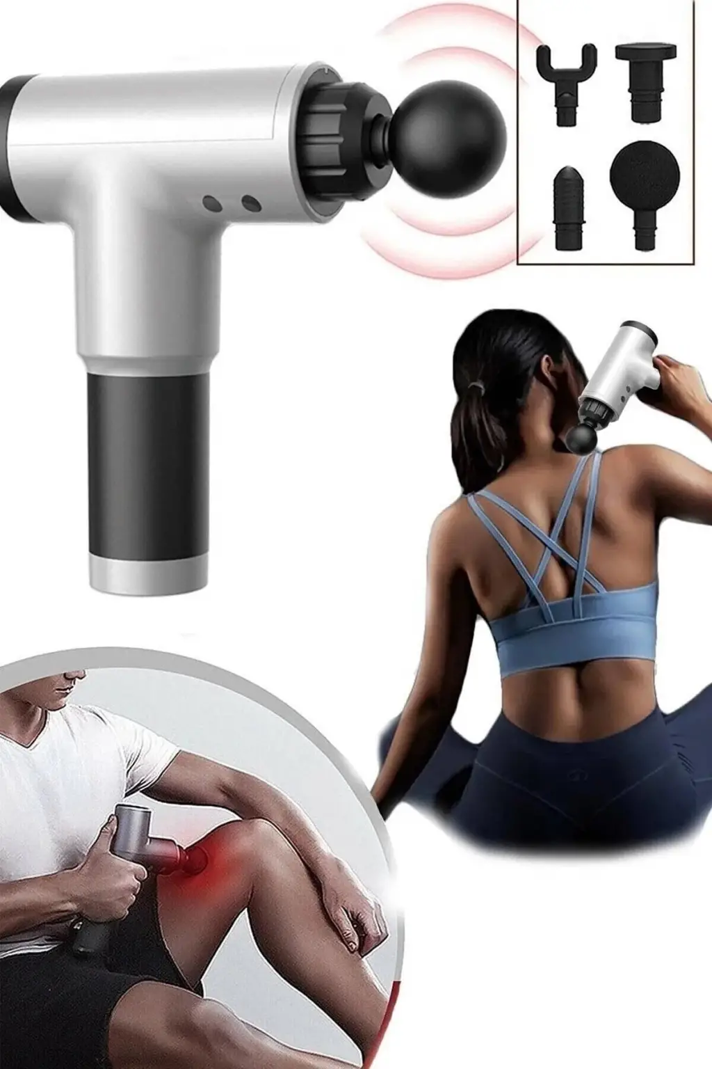 Koblosuz Şarjlı Masaj Tabancası 4 Başlıklı Sporcu Masaj Aleti 6 Kademeli Boyun Bel Sırt B
