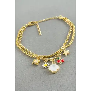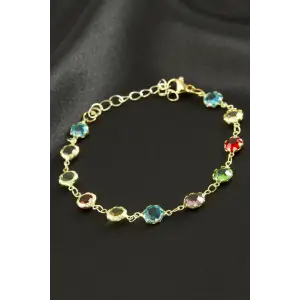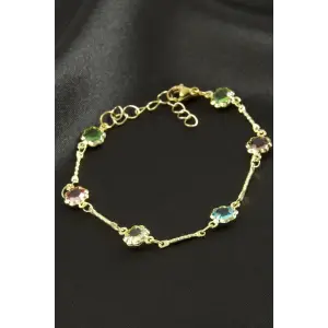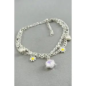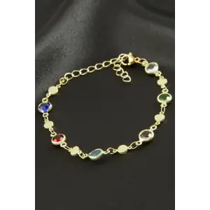 Yuvarlak Kristal Taşlı Çelik Bileklik