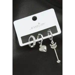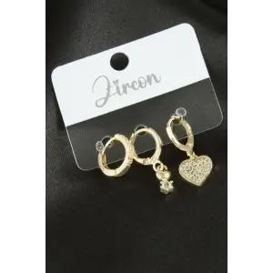 3 Adet Kalp Zirkon Taşlı Küpe