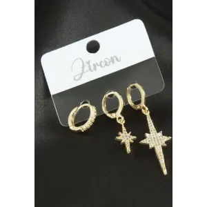 3 Adet Yonca Zirkon Taşlı Küpe