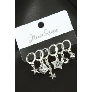 6 Adet Yıldız Zirkon Taşlı Küpe