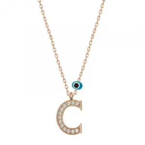925 Ayar Gümüş Nazar Rose C Harfi Kadın Gümüş Kolye (T6869) (336336)