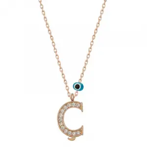 925 Ayar Gümüş Nazar Rose Ç Harfi Kadın Gümüş Kolye (T6870) (336336)