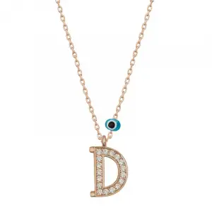 925 Ayar Gümüş Nazar Rose D Harfi Kadın Gümüş Kolye (T6871) (336336)