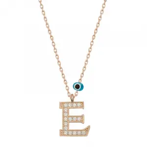 925 Ayar Gümüş Nazar Rose E Harfi Kadın Gümüş Kolye (T6872) (336336)