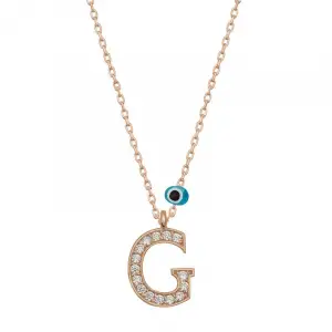 925 Ayar Gümüş Nazar Rose G Harfi Kadın Gümüş Kolye (T6875) (336336)