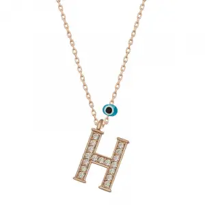 925 Ayar Gümüş Nazar Rose H Harfi Kadın Gümüş Kolye (T6876) (336336)