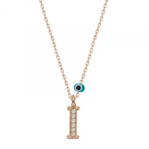 925 Ayar Gümüş Nazar Rose İ Harfi Kadın Gümüş Kolye (T6878) (336336)
