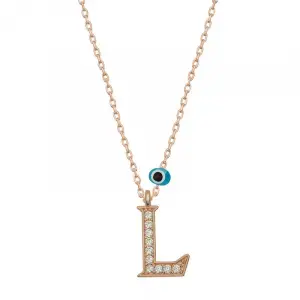 925 Ayar Gümüş Nazar Rose L Harfi Kadın Gümüş Kolye (T6881) (336336)