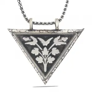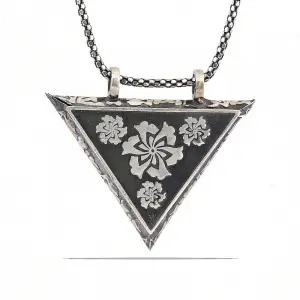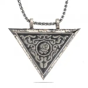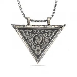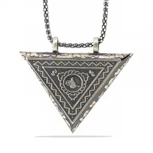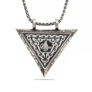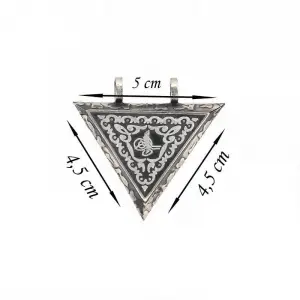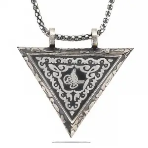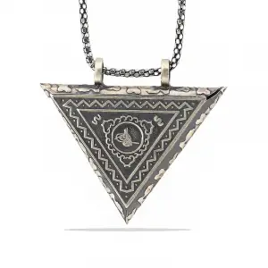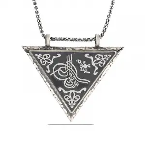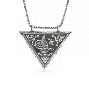 925 Ayar Gümüş Üçgen İçi Açılabilen Tuğra Muskalık Gümüş Kolye (T6065) (336336)