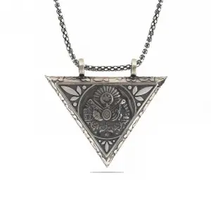925 Ayar Gümüş Üçgen İçi Açılabilen Tuğra Muskalık Gümüş Kolye (T6064) (336336)