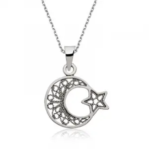 925 Ayar Gümüş Ay Yıldız Kadın Gümüş Kolye (PT2610683) (336336)