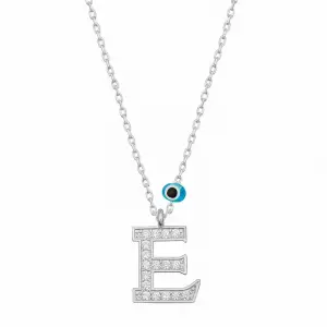 925 Ayar Gümüş Nazar Rodyum E Harfi Kadın Gümüş Kolye (T6809) (336336)