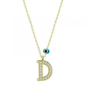 925 Ayar Gümüş Nazar D Harfi Kadın Gümüş Kolye (T6772) (336336)