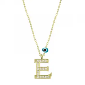 925 Ayar Gümüş Nazar E Harfi Kadın Kolye (T6773) (336336)