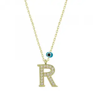 925 Ayar Gümüş Nazar Gold R Harfi Kadın Gümüş Kolye (T6794) (336336)