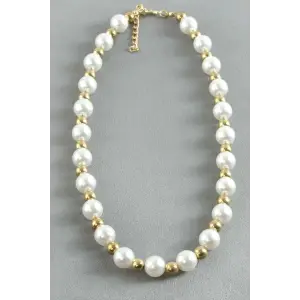 Oval Metal İnci Kolye