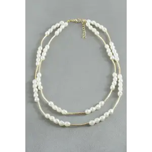 Oval İnci İkili Kolye