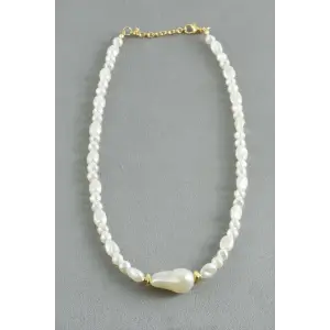 Oval Taşlı İnci Kolye