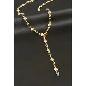 Kalp Karışık Renkli Zirkon Taşlı Çelik Y Kolye