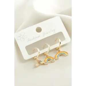 3 Adet Gökkuşağı Zirkon Taşlı Küpe