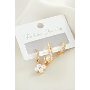 3 Adet Çiçek İnci Zirkon Taşlı Küpe