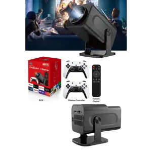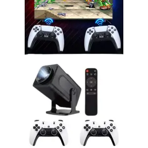 Çift Kollu Game Box Projeksiyon Cihazı Kumandalı Android Tv Dahili Hoparlör
