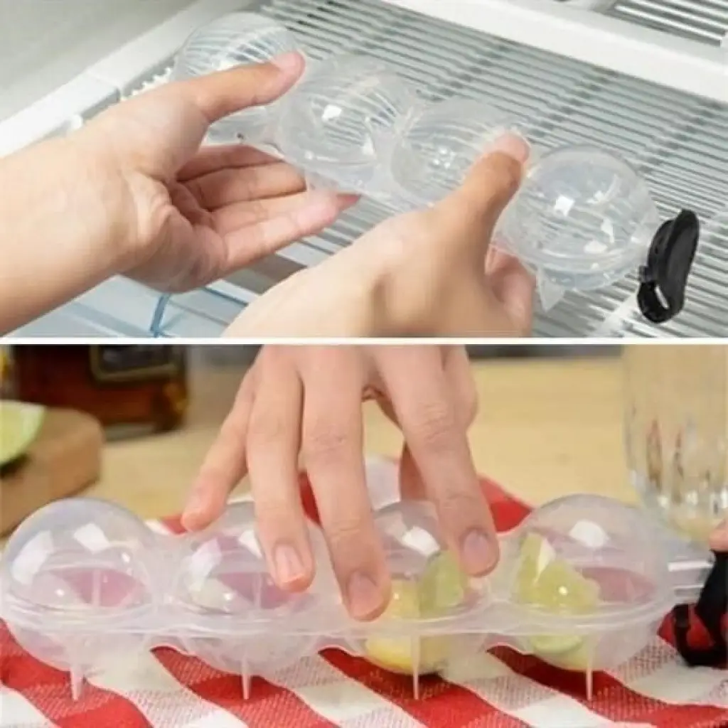 BX 4 lü Pratik Küre Buz Kalıbı Top Sunum Buzu sayesinde artık içecekleriniz görsel açıdan daha zengin. Çilek, kiraz, portakal, elma, limon gibi her çeşit meyveyi ekleyerek üzerine su koyarak misafirlerinize güzel bir sunum yapabilirsiniz.