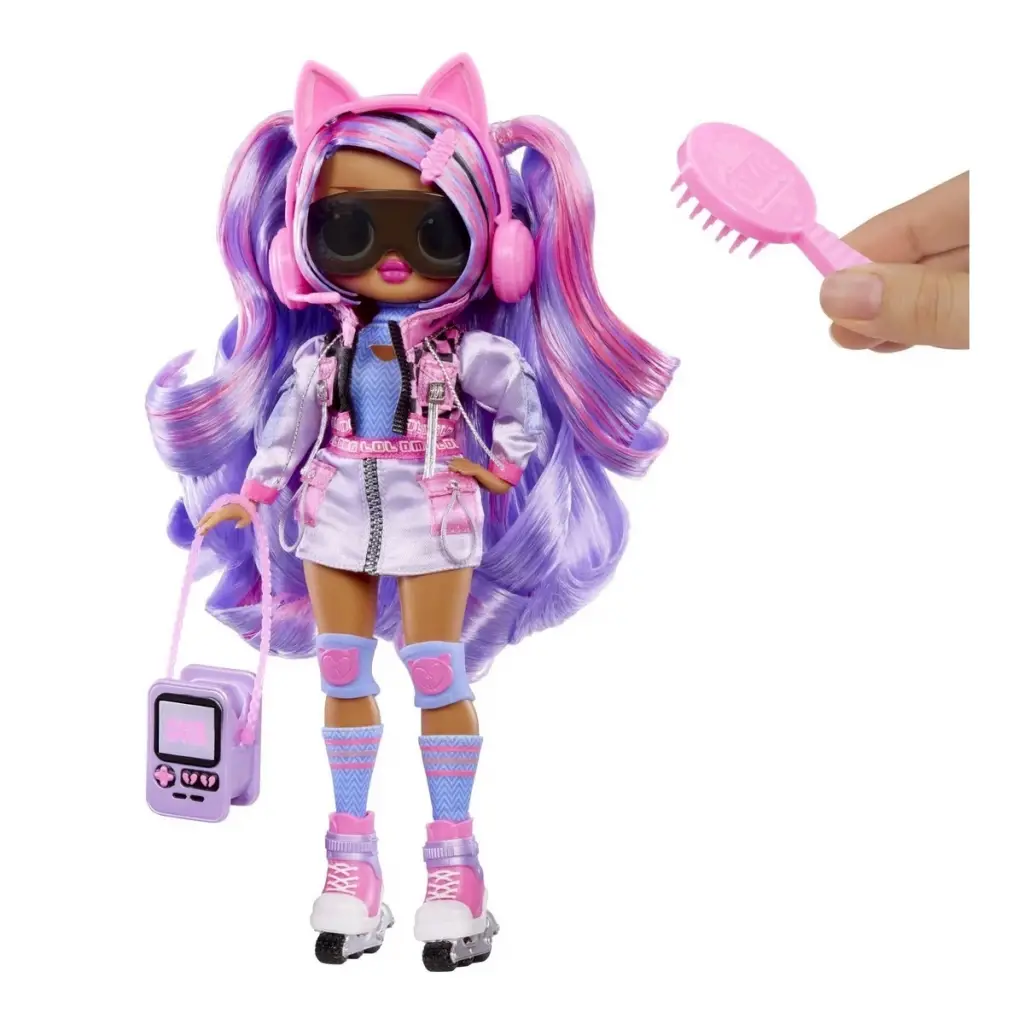 Ayakkabıları, gözlükleri, kedi kulaklı kulaklıkları ve daha pek çok aksesuarıyla gelmektedir. 25 cm boyunda ve oynayabilen eklemlere sahiptir.