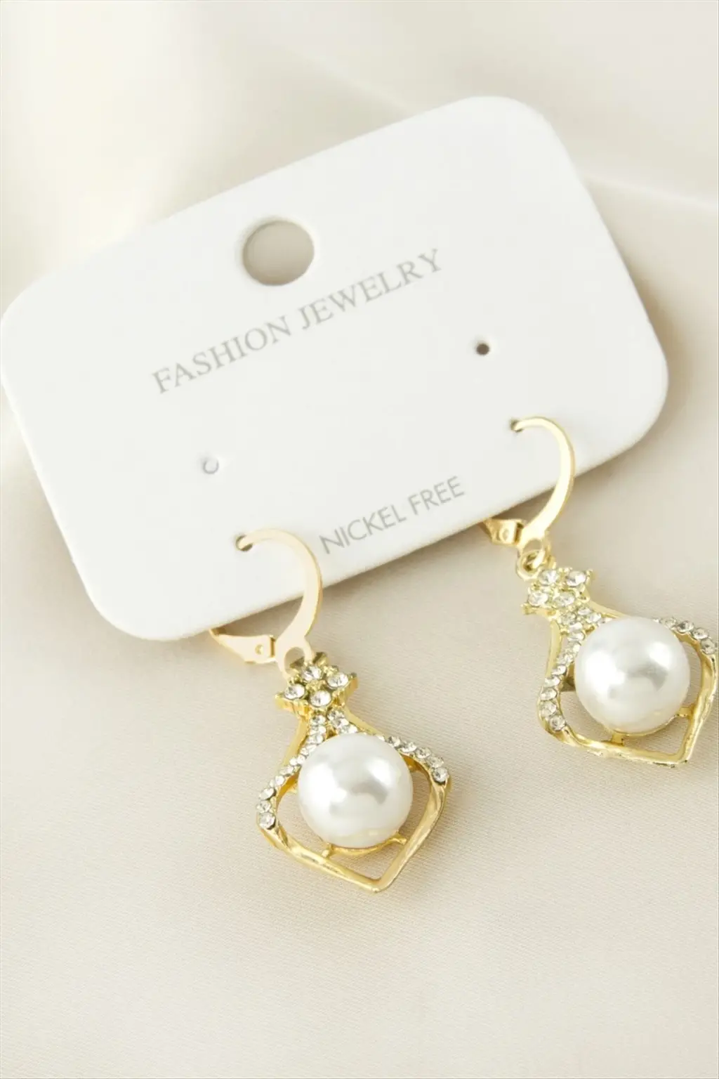 Küpe; Ürün malzemesi mine boyama, inci, taş ve metaldir. Ürün üzeri kaplamalıdır. Ürün boyu 4 cmdir Kartlıdır.