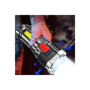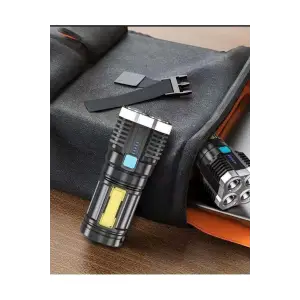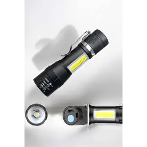 Ultra Parlak El Feneri Usb Şarj 4 Led+yan Cob Led Taktik Günlük Hayat Kamp Avcılık El Feneri