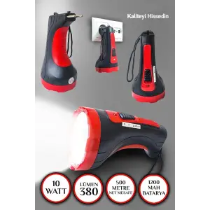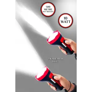 Şarjlı 10w Projektör Led El Feneri 2 Mod Aydınlatmalı Uzun Menzil Güvenlik Bekçi Polis Feneri Işıldak