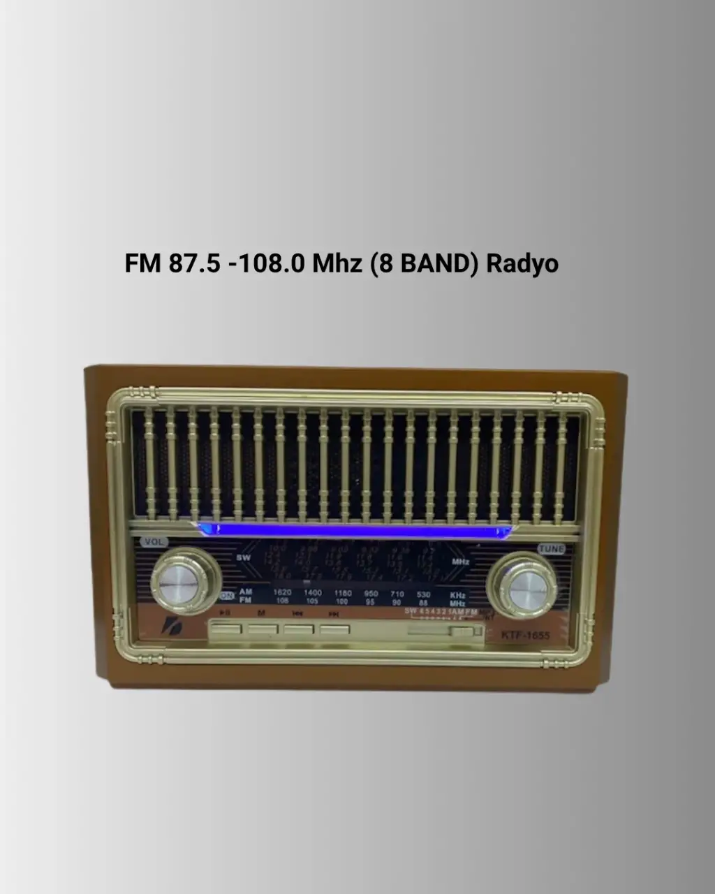 Bu kablosuz Bluetooth hoparlör, hem modern teknolojiyi hem de nostaljik görünümü bir araya getirerek kullanıcılarına farklı bir ses deneyimi sunuyor. Mobil cihazlarla tam uyumluluğu sayesinde Bluetooth üzerinden dilediğiniz müziği kablosuz olarak dinleyebilirsiniz.FM radyo özelliği ile klasik radyo yayınlarını takip etmek isteyenler için de ideal bir seçenek. 8 band FM destekli sistem, 87.5 – 108.0 MHz aralığında yayın yapan tüm kanalları net biçimde iletir. Antenli tasarımı, sinyal kalitesini artırır.USB ve SD kart girişleri sayesinde doğrudan müzik dosyalarınızı oynatabilirsiniz. MP3 format desteği ile dilediğiniz listeleri kolayca çalabilirsiniz. LED ekranı, tüm kontrolleri kolaylaştırır ve LED el feneri özelliği sayesinde cihaz karanlık ortamlarda da işlevini sürdürür.Ahşap görünümlü dış yüzeyi ve kompakt tasarımı ile masaüstü kullanımlar için şık bir alternatif sunar. Aynı zamanda taşıma kolu sayesinde kolayca taşınabilir. İster evde ister dış mekan etkinliklerinde rahatlıkla kullanılabilir.Cihaz micro USB ile şarj edilebilir ve dahili olarak 18650 şarjlı pil ile gelir. Alternatif olarak 2 büyük boy pille de çalışabilir. Bu özellik, farklı ortamlarda enerjiye erişimin olmadığı durumlarda büyük avantaj sağlar.