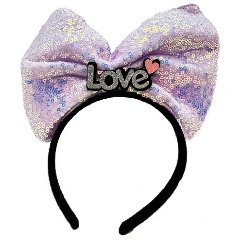 Led Işıklı Gümüş Love Yazılı Lila Fiyonk Taç