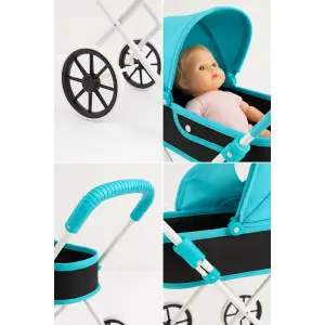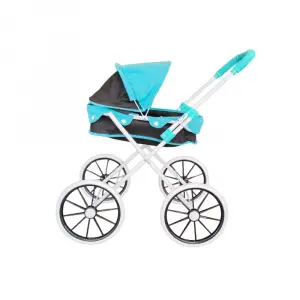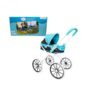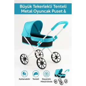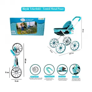 Büyük Tekerlekli Tenteli Katlanabilir Metal Oyuncak Bebek Puseti Premium Lüx Mavi