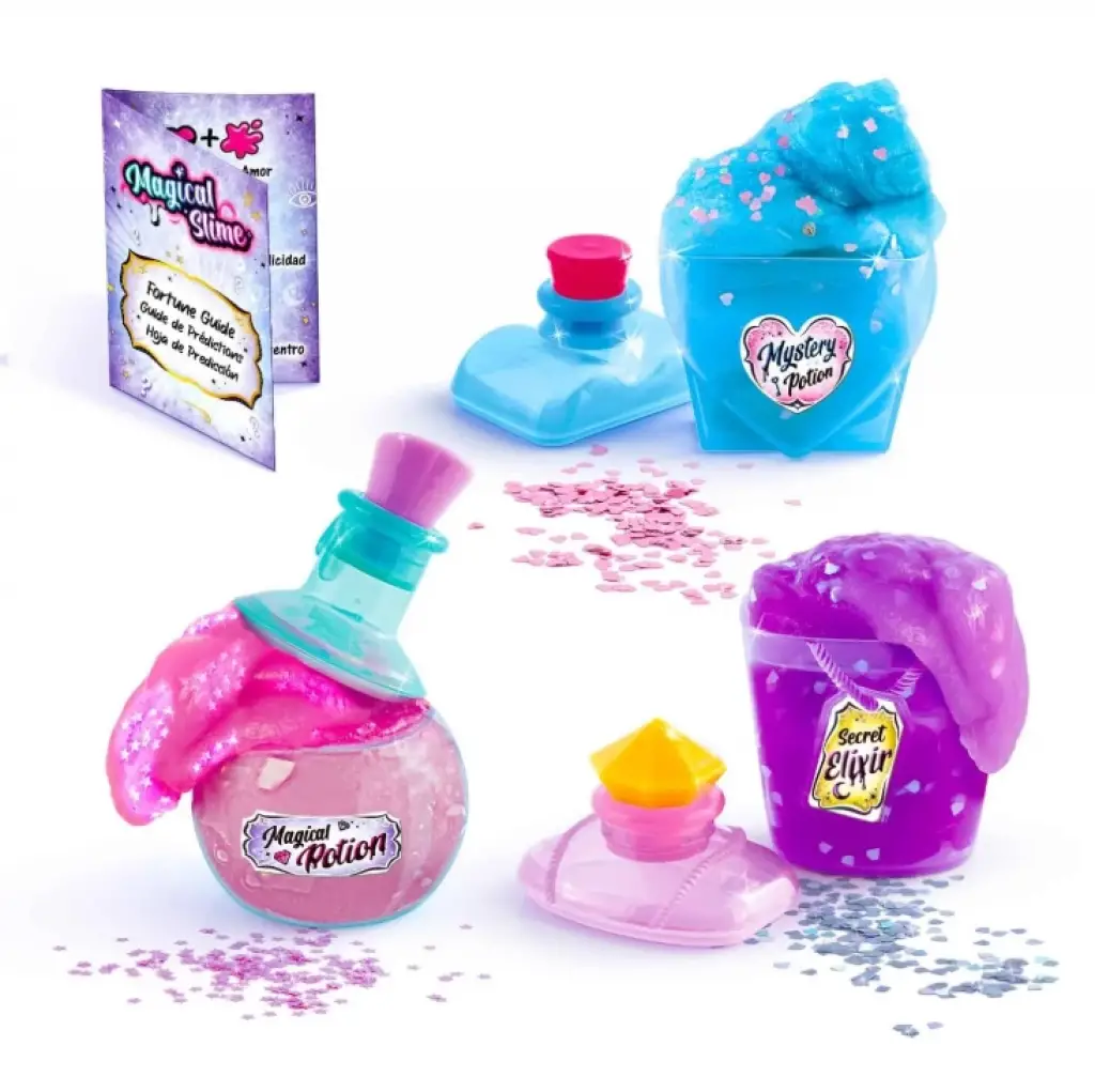 3 iksir şişesi ile 3 sihirli renklerde slime yaratın!