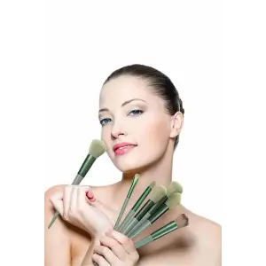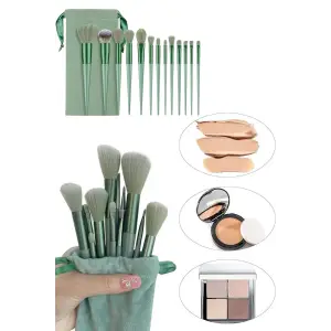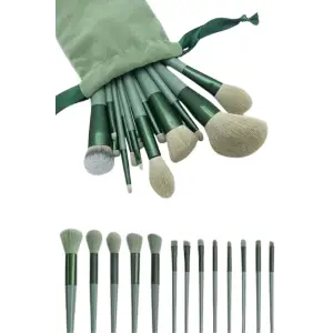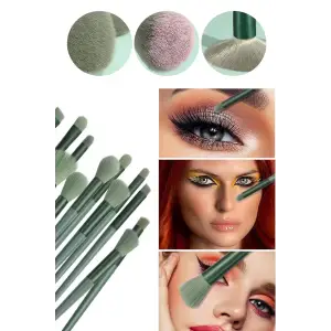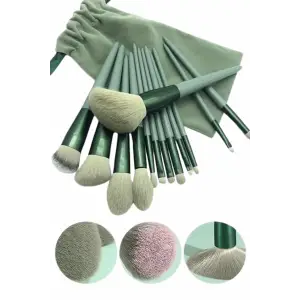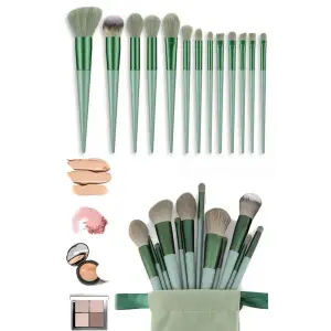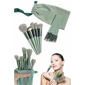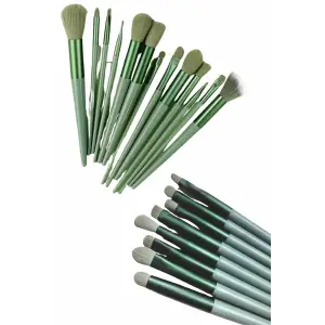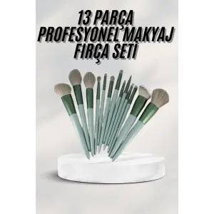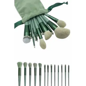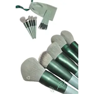 Makyaj Fırça Seti Yeşil 13 Parça Fondöten Fırçası Allık Fırçası Far Fırçası