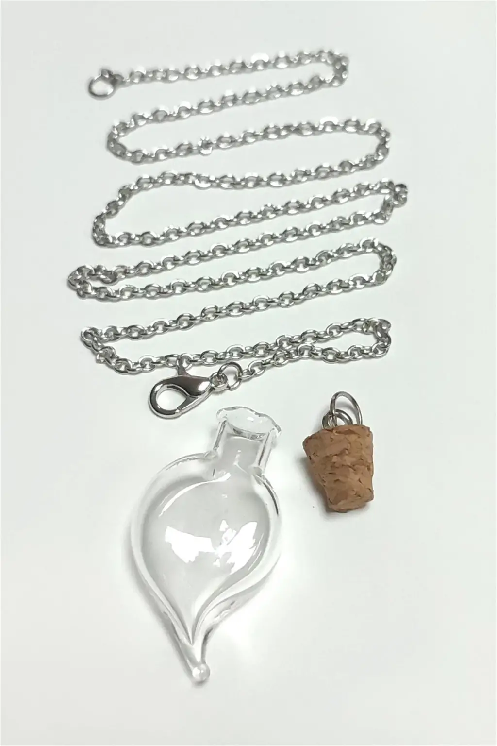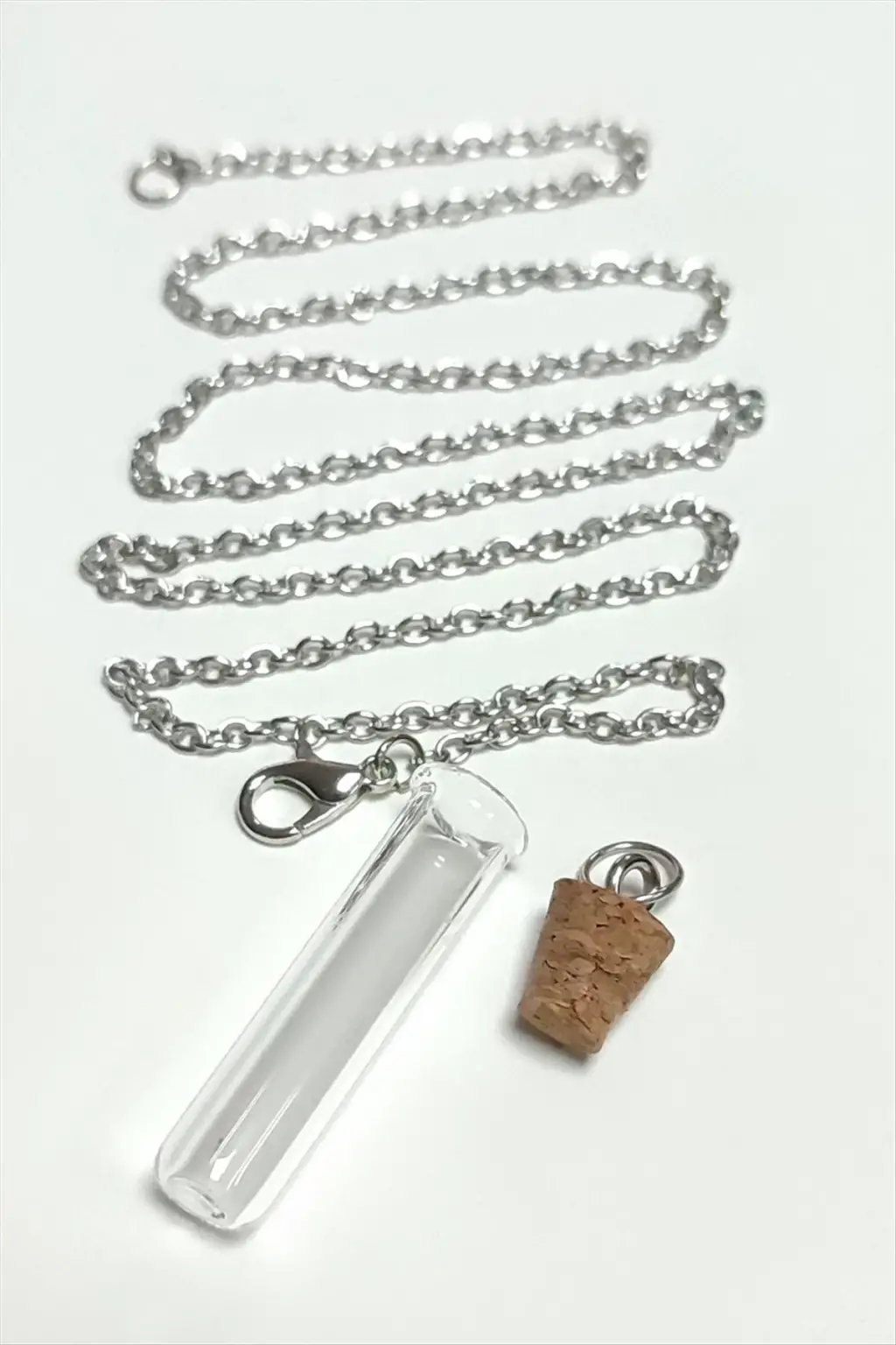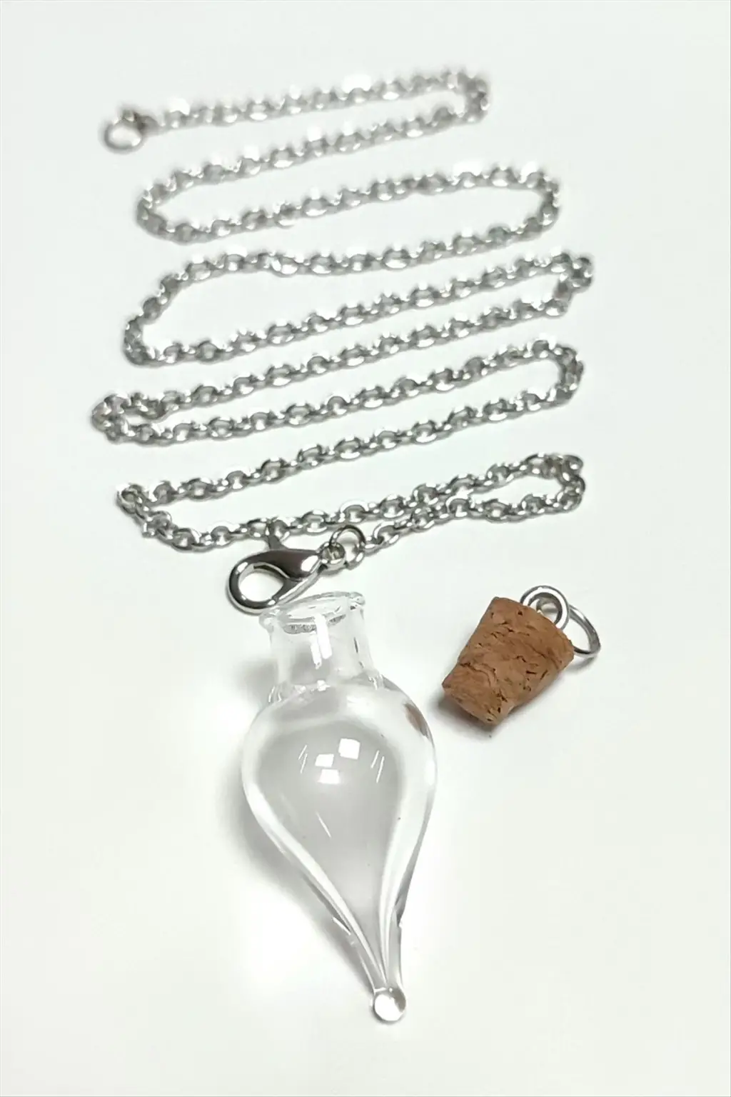 Kolye; Ürün malzemesi cam ve metaldir. Ürün cam boyu 15*35 mm ve zincir boyu 60 cmdir. Ürün demonte şeklinde gönderilecektir. İstediğiniz aparatı içine koyarak kullanabilirsiniz. Ürün modelleri asortilidir. Siparişlerinizde karışık olarak gönderilecektir.