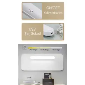 CATA CT 5249 Beyaz Kasa 3W Şarjlı Led Aplik Dokunmatik 3 Renk Modu
